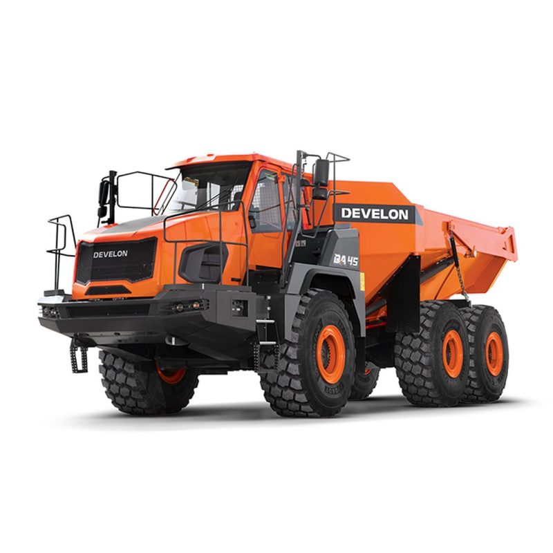 The DA45-5 articulated dump truck offers the power, technology, comfort and larger payload capacity for challenging non-road construction and mining applications. To protect against overloading, an active payload meter can use a traffic light indicator to alert operators.